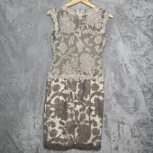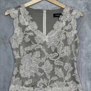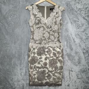 Tadashi Shoji Dress Womens 2 Gray Beige Lace Floral Sheath Cocktail ART16034M
