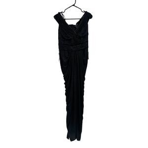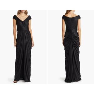 Tadashi Shoji Ellery Draped Metallic Jersey Gown in Black