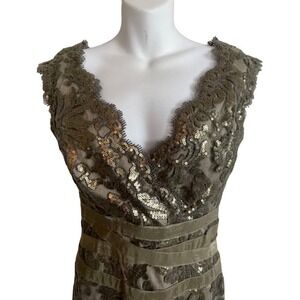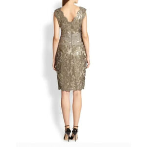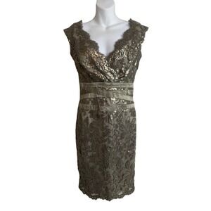 Tadashi Shoji Embellished Bronze Sequins Metallic Lace Zip Sheath Dress Size 4