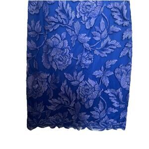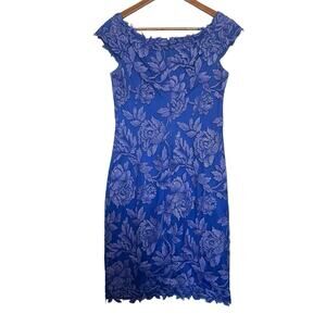 Tadashi Shoji Embroidered Lace Cocktail Dress Womens Size 4 Blue Sleeveless wedding guest night out