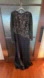 This stunning black evening gown features intricate lace detailing, perfect for formal occasions. Its elegant design offers a timeless look.