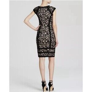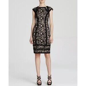 Tadashi Shoji Embroidered Lace Sheer Inset Pintuck Dress in Black Primrose Women's Size 4