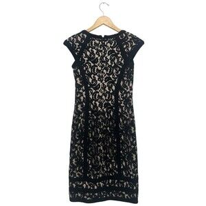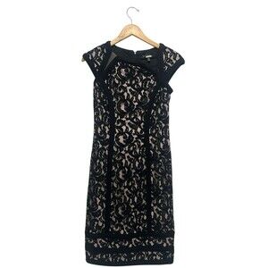 Tadashi Shoji Embroidered Lace Sheer Inset Pintuck Black Primrose Dress Size 4