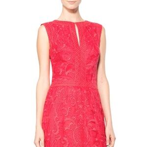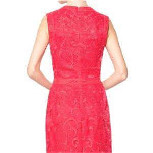 Tadashi Shoji - Embroidered Tulle Keyhole Neckline Dress - Rouge