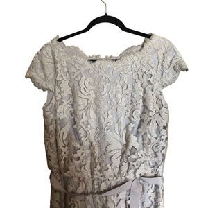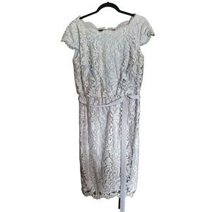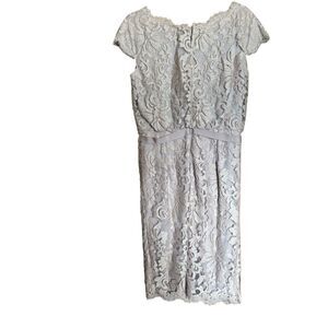 Tadashi Shoji Evening Sheath Dress 10 Beige Lace Cap Sleeves Cocktail Wedding
