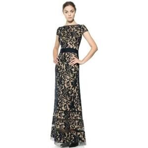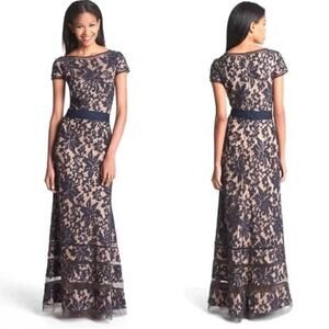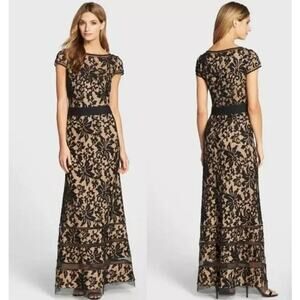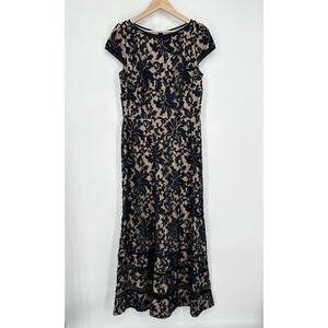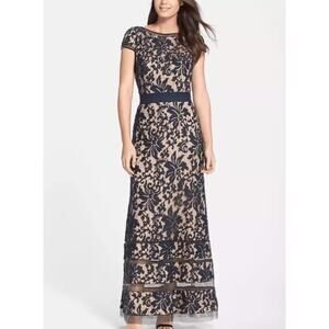 Tadashi Shoji Maxi Dress Embroidered Floral Lace Overlay Cap Sleeve Formal Gown