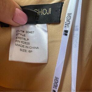 Tadashi Shoji, formal gown, sequin dress, gold dress, metallic dress, tiered gown, petite evening dress, gala dress, tulle gown, prom dress, wedding guest dress, holiday party dress, red carpet, special occasion, size 6P, luxury eveningwear, elegant dress, designer gown, petite formal wear, V-neck gown