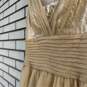 Tadashi Shoji Gold Tiered Gown Petite 6P Sequin V-Neck Tulle Formal Dress Hoco