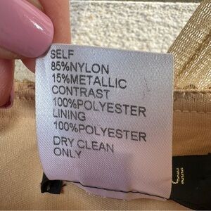 Make an unforgettable entrance in this stunning Tadashi Shoji gold tiered gown, size 6P. This showstopping formal dress features a shimmering metallic sequin bodice with a flattering pleated waistband and a plunging V-neckline. The layered tiered tulle skirt adds romantic movement and elegance to every step. Perfect for formal events, weddings, galas, or holiday parties, this gown is both sophisticated and eye-catching. Fully lined with a hidden back zipper and hook closure. Fabric is a blend of nylon, metallic, and polyester. In pristine, like-new condition.