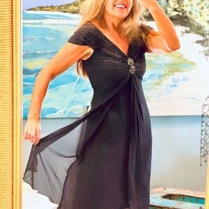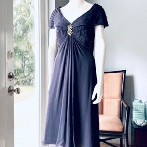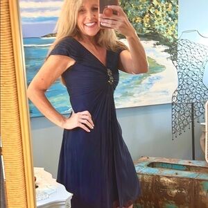 👗Tadashi Shoji, Gorgeous Luxury Cocktail Dress, Navy Blue, Empress Waist, 4P