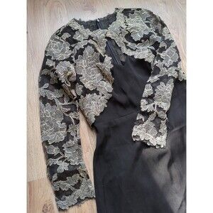 Tadashi Shoji Gown Dress Embroidered Long Sleeve Sheer Gold Floral Womens 8