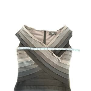 Tadashi Shoji Gray Black Ombre V-Neck Cocktail Tiered Sheath Dress Size Small