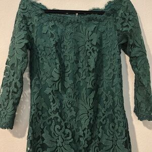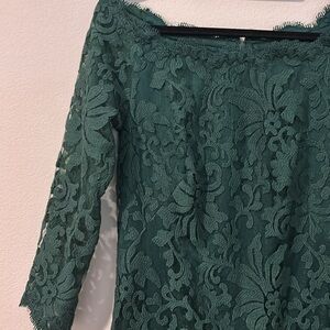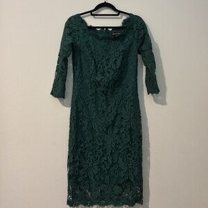 Tadashi Shoji Green Lace Sheath Scalloped Dress 10