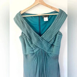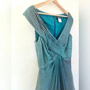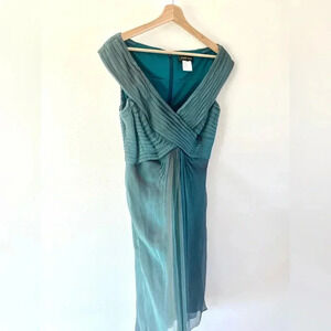 Tadashi Shoji Iridescent Teal & Pink Cross Front Sleeveless Silk Dress Size 12