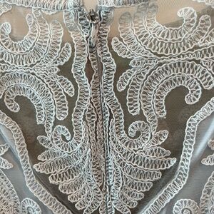 It's all in the details for this intricately-detailed Tadashi Shoji gown. Show off the illusion hem with black pumps.
