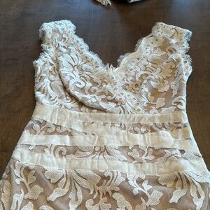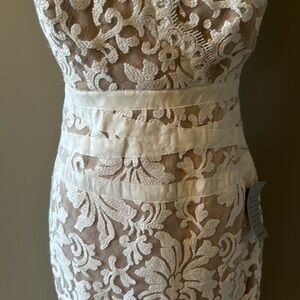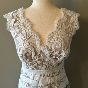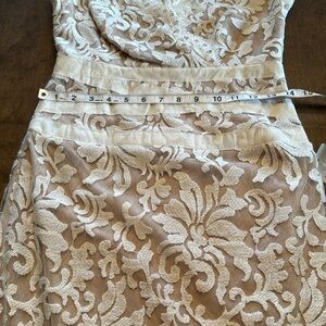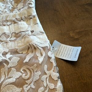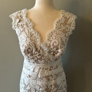 Gorgeous ivory and nude lace dress. This dress would be absolutely perfect for a wedding rehearsal. No visible flaws. Non-smoking home.