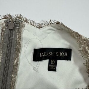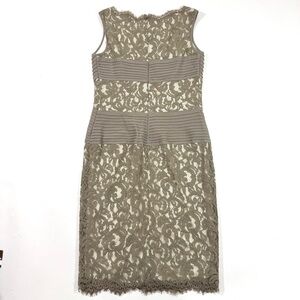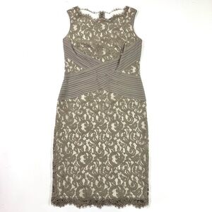 Tadashi Shoji Lace Dress Pintuck Jersey Waist Size 10 Cream Taupe