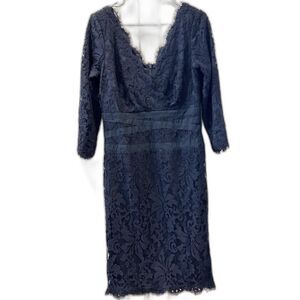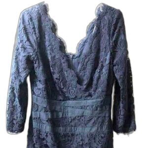 Tadashi Shoji navy blue lace dress in excellent condition. The dress is a size 12 and measures approx 20" pit-to-pit and 42" long.