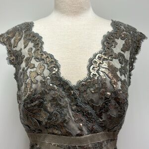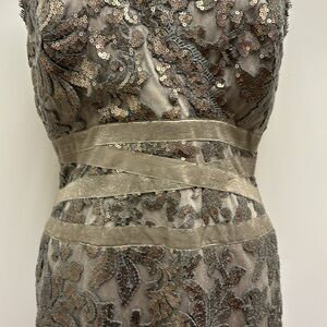 Elegant lace dress with intricate detailing. Features cap sleeves and a fitted silhouette. Perfect for formal occasions. Just received and doesn’t fit….reposhing but in perfect shape…