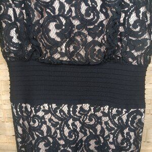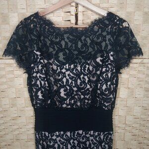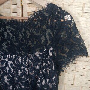 Tadashi Shoji Lace Nude Illusion Flared Evening Gown Dress Bateau Cap Sleeves 6
