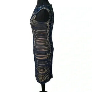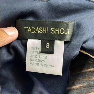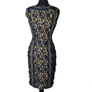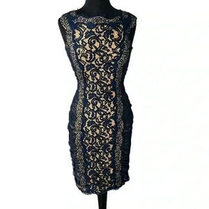 Tadashi Shoji Lace Overlay Sleeveless Navy Blue Tan Midi Dress Size 8