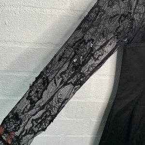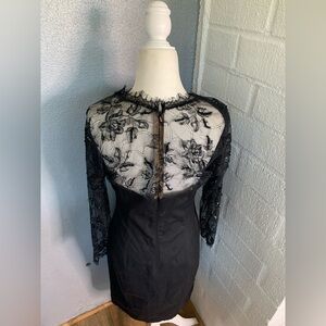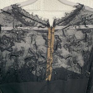Tadashi Shoji Lace Black Sequins Bodycon Stretch Dress sz 8