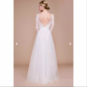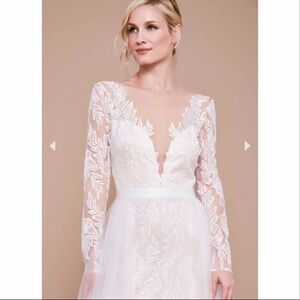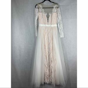 Tadashi Shoji Louisa Long Sleeve Lace Tulle wedding gown, size 6 Ivory/petal New without tag.