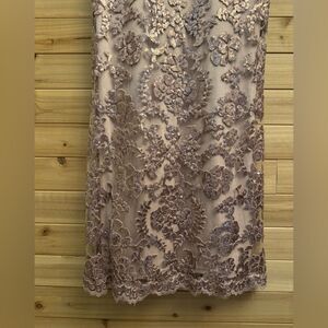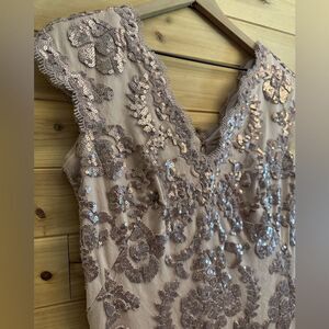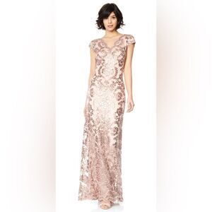 Tadashi Shoji Medium Rose Gold Paillette Embroidered Lace Scalloped V-Neck Gown