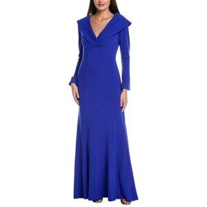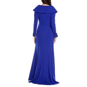 Tadashi Shoji Mystic Blue Crepe Sheath Portrait Collar Gown