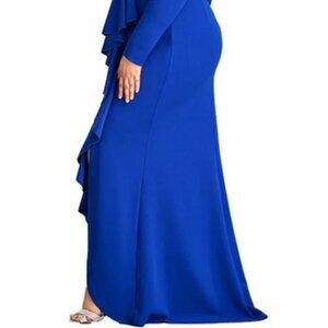 Tadashi Shoji Mystic Blue Ruched Long Sleeve Column Gown