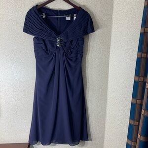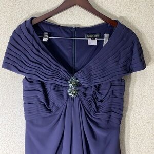 Tadashi Shoji Navy Blue Dress Elegant V-Neck Party
