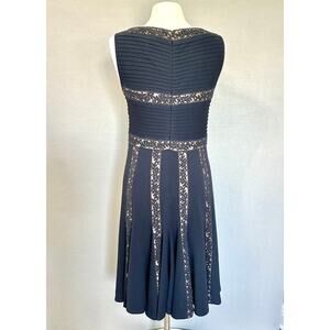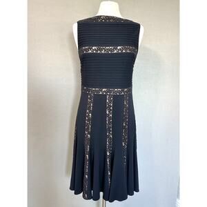 Tadashi Shoji Navy Blue Pintuck Lace Jersey Fit & Flare Dress Size Large