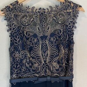 Tadashi Shoji Navy/Gold Sleeveless Gown - Size 6