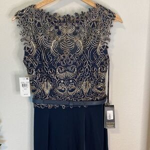 Tadashi Shoji Navy/Gold Sleeveless Gown - Size 6