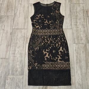 Tadashi Shoji Nemuro Dress Womens 8 Black Nude Lace Sheath Cocktail Evening