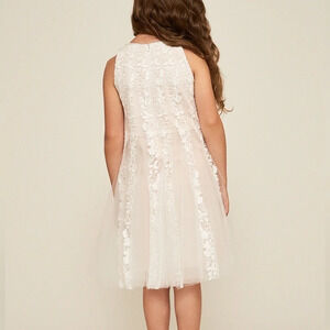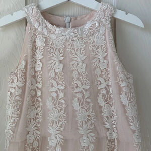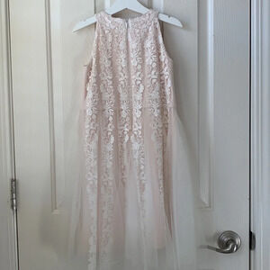 Tadashi Shoji Nissita Lace Tulle Dress Girl Size 6 Ivory/Blush