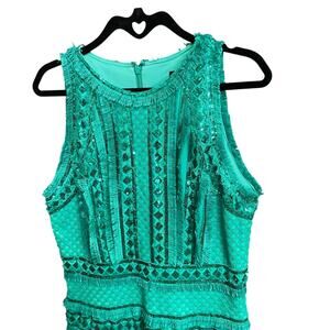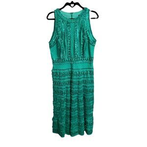 Tadashi Shoji Norma Sequin Fringe Fit & Flare Midi Dress Jasmine Green Womens 10