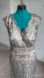 Posh show description: TADASHI SHOJI “Pailette” dress size 12. Gray bronze (hint of greenish taupe), Sequined lace, scalloped hem and shoulder, surplice bust, shimmery ribbon waist. Lined. GUC. P2P19”+stretch, waist 32”, hip 40”, length 42”. Retail $338.