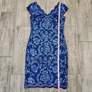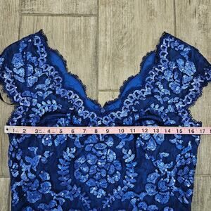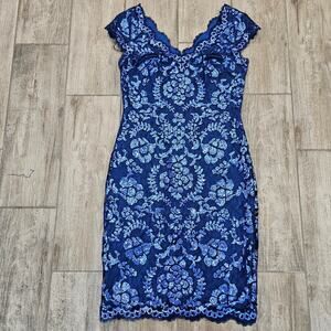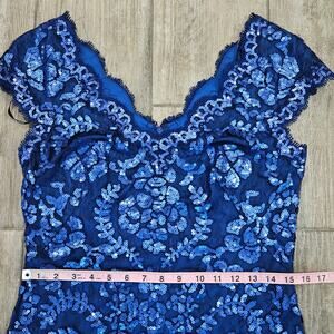 Tadashi Shoji Paillette Embroidered Lace Dress V-Neck Cap Sleeve Steel Blue Women’s 8