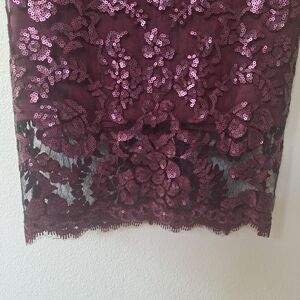 Tadashi Shoji Paillette Sequin Lace Knee Length Dress Cabernet Size 6