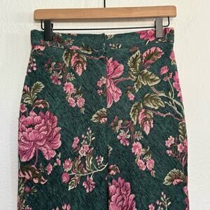 Tadashi Shoji Pants Floral Jacquard Tapestry Trousers Green Pink Size 4