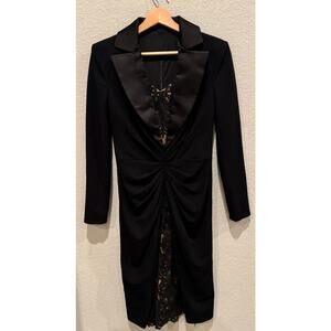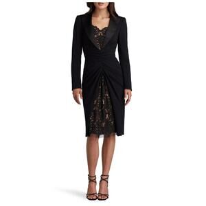 Tadashi Shoji Peekaboo Lace Panel Long Sleeve Cocktail Dress Size XS
