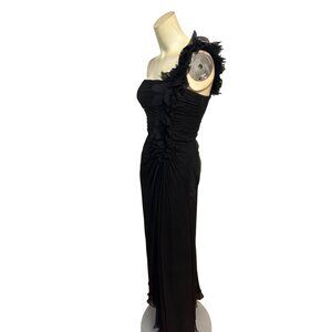 Tadashi Shoji Petite One-Shoulder Black Silk Formal Dress 2P