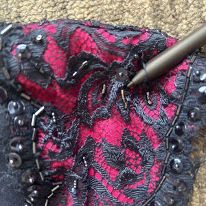 Very clean - very clean - no stains or rips but there are a few places on the beaded top where sequins are missing or beads are loose, reflected in price.