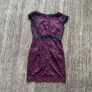 Tadashi Shoji Pink / Navy Beaded and Lace Cocktail Dress, Size 8