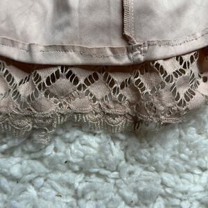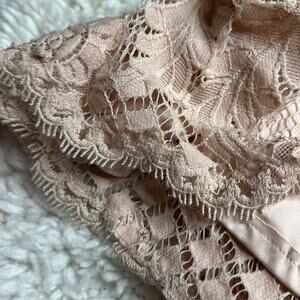 This stunning Tadashi Shoji gown in a soft pink hue features a romantic V-neckline and charming puff short sleeves. Perfect for weddings, the dress showcases a fitted silhouette that gracefully flows into a full-length skirt, exuding elegance and sophistication.