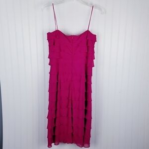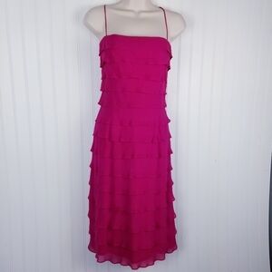 Tadashi Shoji Pink Silk Midi Dress Layered Ruffles Spaghetti Straps Small Vintag