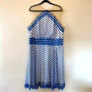 Tadashi Shoji Plus Size 100% Silk Blue and White A-Line Midi Dress