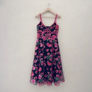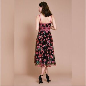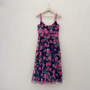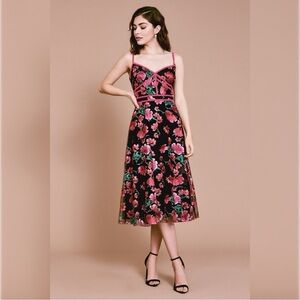 Tadashi Shoji Posie Bustier Dress Midi Fit Flare Floral Embroidered Feminine 8