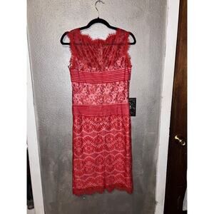 Tadashi Shoji Prom New Years Pepperment Chantilly Lace Boatneck Sleeveless Dress